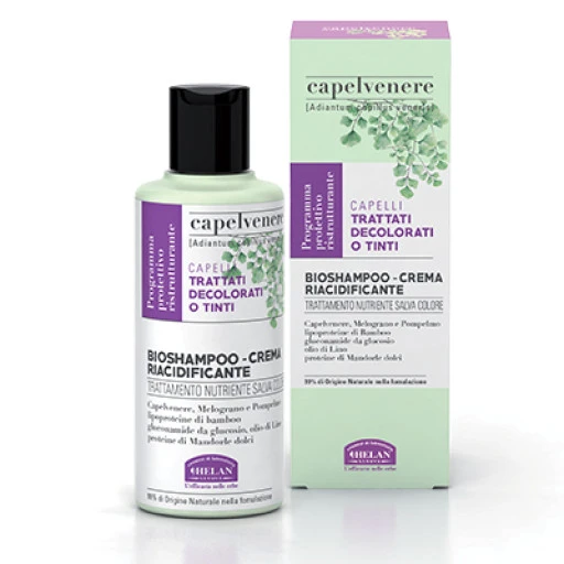 Il BIOSHAMPOO-CREMA RIACIDIFICANTE Capelvenere è un trattamento nutriente salva colore per i capelli con mèches, decolorati o tinti, permanenti.
