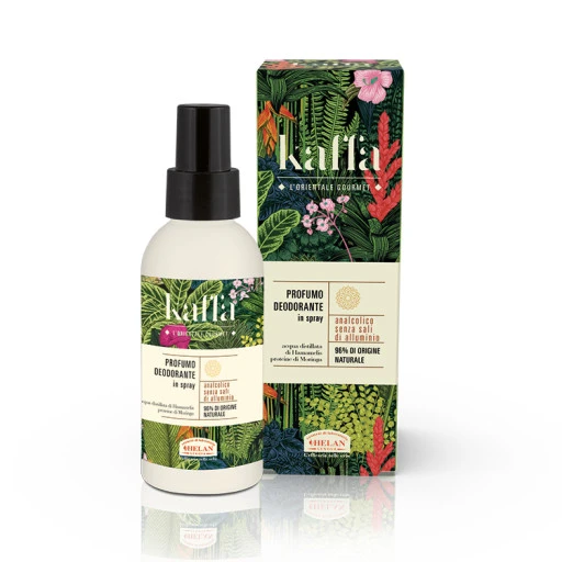 Il PROFUMO DEODORANTE in spray Linea Kaffa di Helan è un deodorante analcolico senza sali di alluminio.
