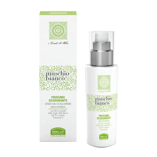 Il PROFUMO DEODORANTE Muschio Bianco di Helan ha una formula innovativa leggera ma efficace che non irrita la pelle e ne rispetta l’acidità naturale.
