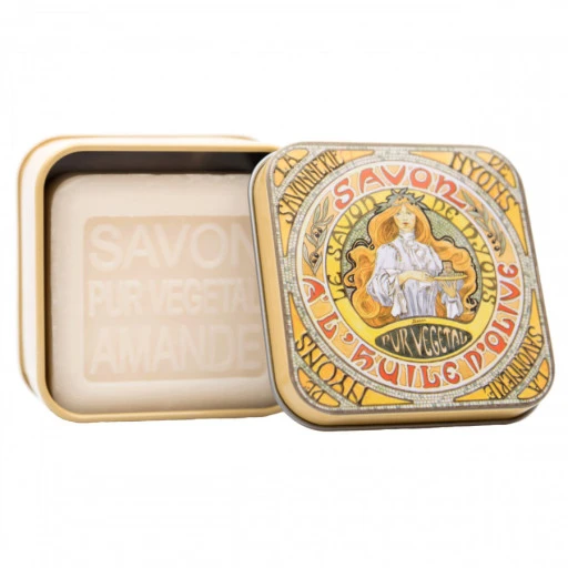 La latta di metallo che contiene il SAPONE ARTIGIANALE ALLA MANDORLA è la specialità de La Savonnerie de Nyon ed una volta finito il sapone può essere riutilizzata in moltissimi modi.