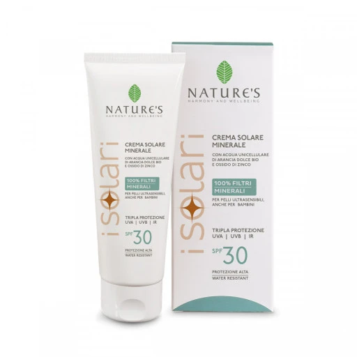 La CREMA SOLARE MINERALE I Solari Nature’s è una crema solare innovativa perché formulata esclusivamente con filtri solari minerali e pensata soprattutto per le pelli sensibili, per le pelli chiare e delicate ed anche per le pelli dei più piccoli.