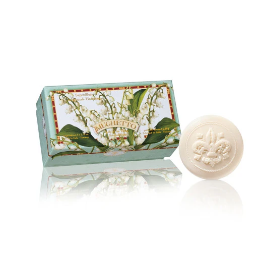 astuccio contenente 6 saponi artigianali profumati al MUGHETTO da 50gr ciascuno.